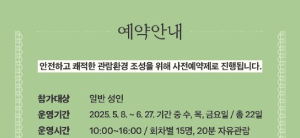 | 운영 기간 | 2025년 5월 8일 ~ 6월 27일 (매주 수/목/금) |