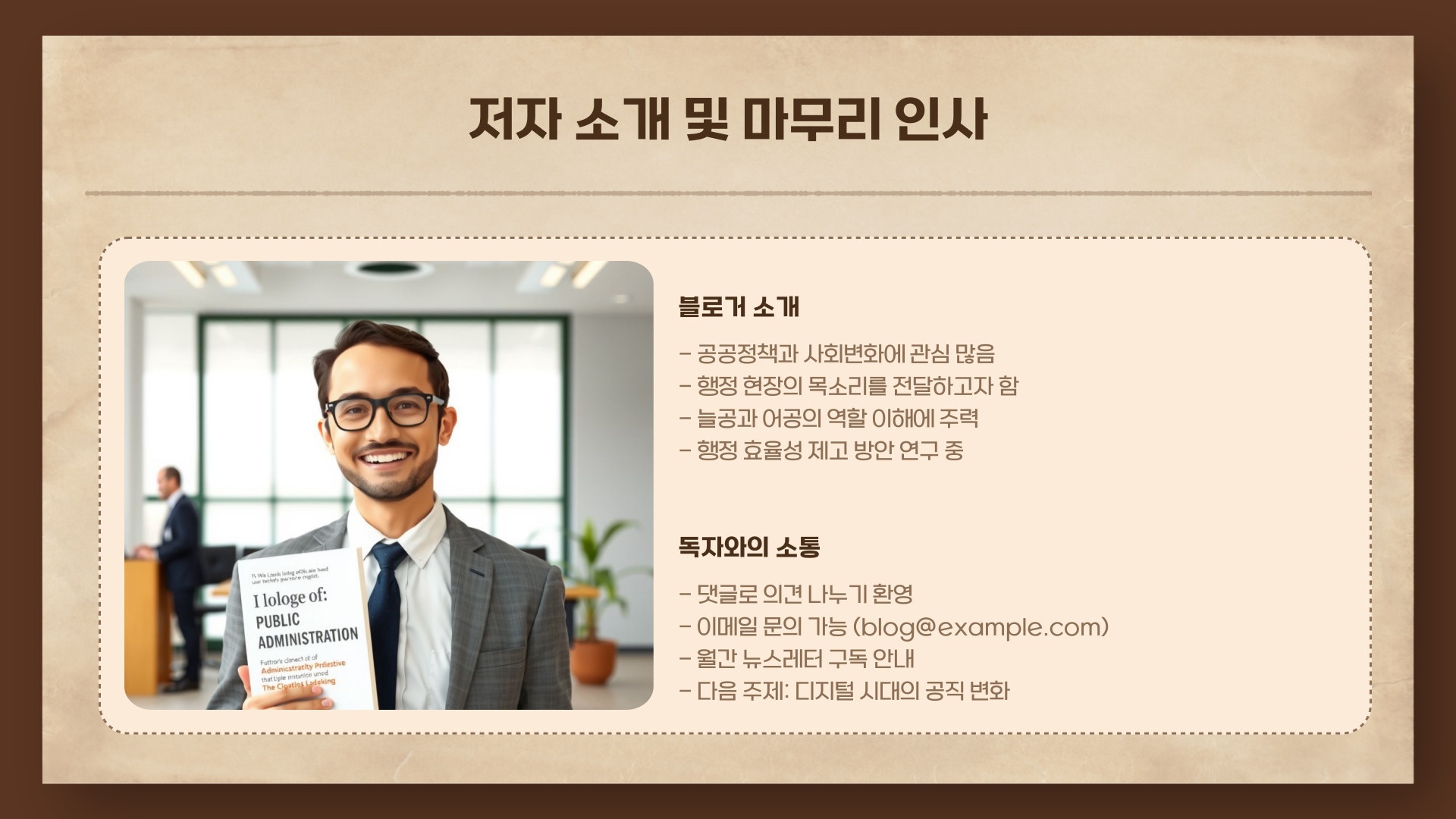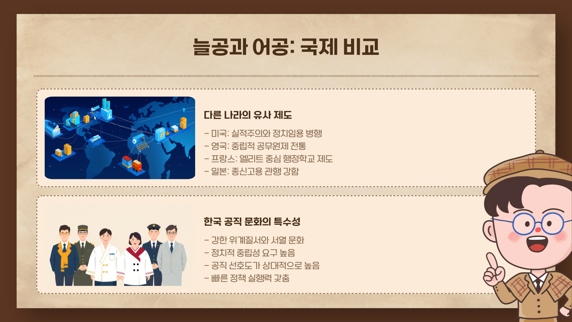 정책은 한 사람의 힘으로 완성되지 않아요. 늘공이 쌓아온 안정성과 어공이 밀어붙이는 추진력, 그 균형 속에서 진짜 변화가 만들어지죠. 우리는 공직자들이 어떤 배경을 가졌는지를 이해함으로써, 정책과 사회 변화의 흐름을 더 깊이 읽을 수 있어요. 여러분은 어떤 스타일의 공무원에게 더 끌리시나요? 지금 댓글로 생각을 나눠보세요. 행정을 읽는 힘, 여러분과 함께 키워가고 싶어요. 😊