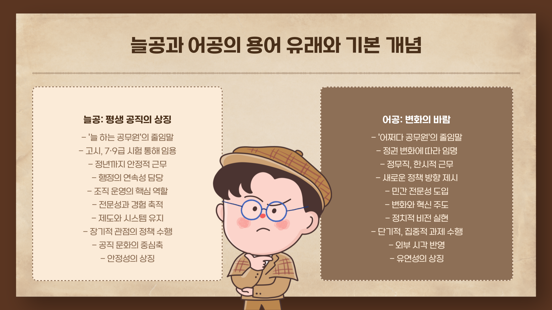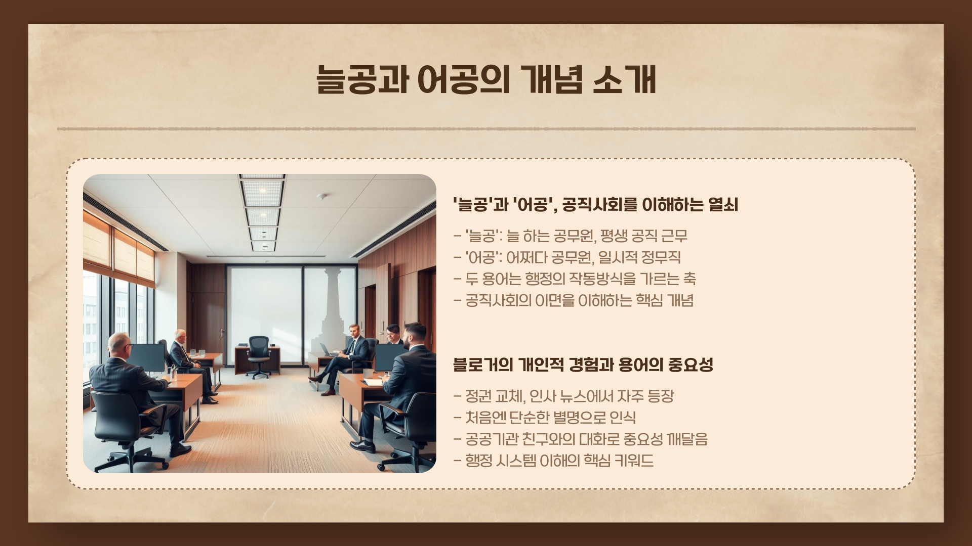 뉴스에서 '늘공', '어공'이라는 단어를 들으면 낯설게 느껴지셨나요? 하지만 이 두 단어가 한국 행정의 속살을 파헤치는 열쇠라는 것, 알고 계셨나요?