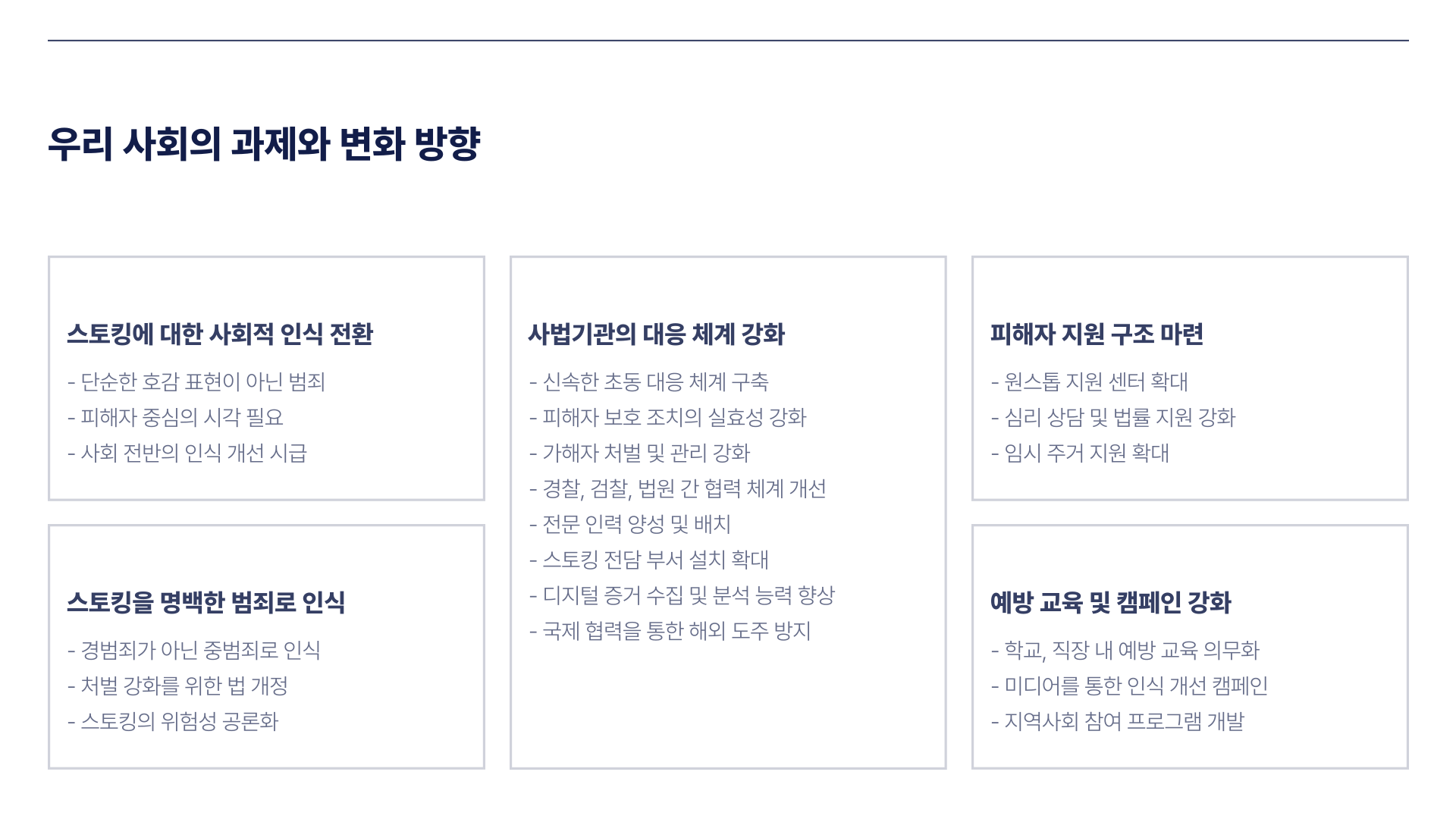 스토킹 문제에 대한 법적·제도적 재정비 필요성을 크게 일깨워주었습니다.