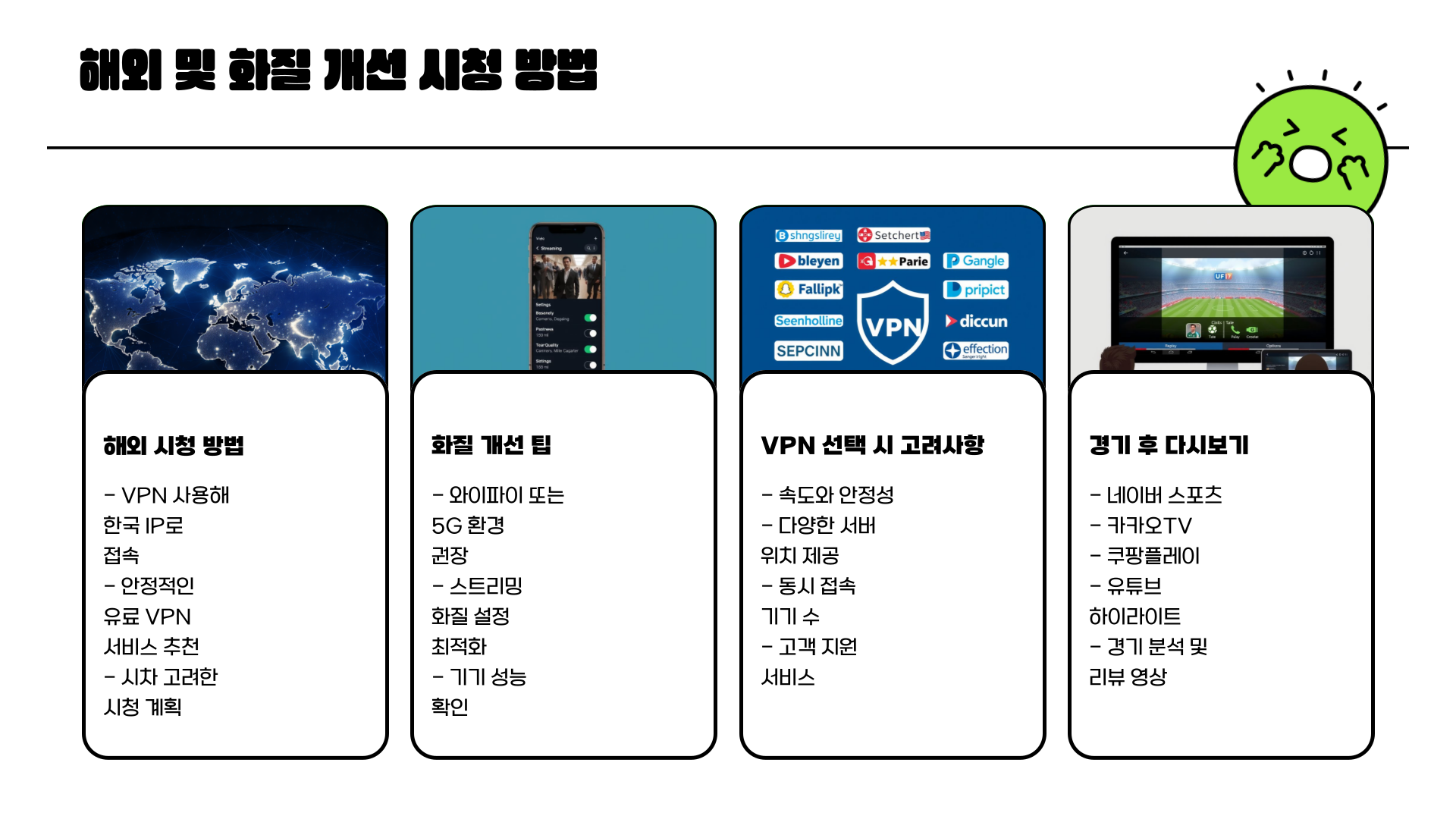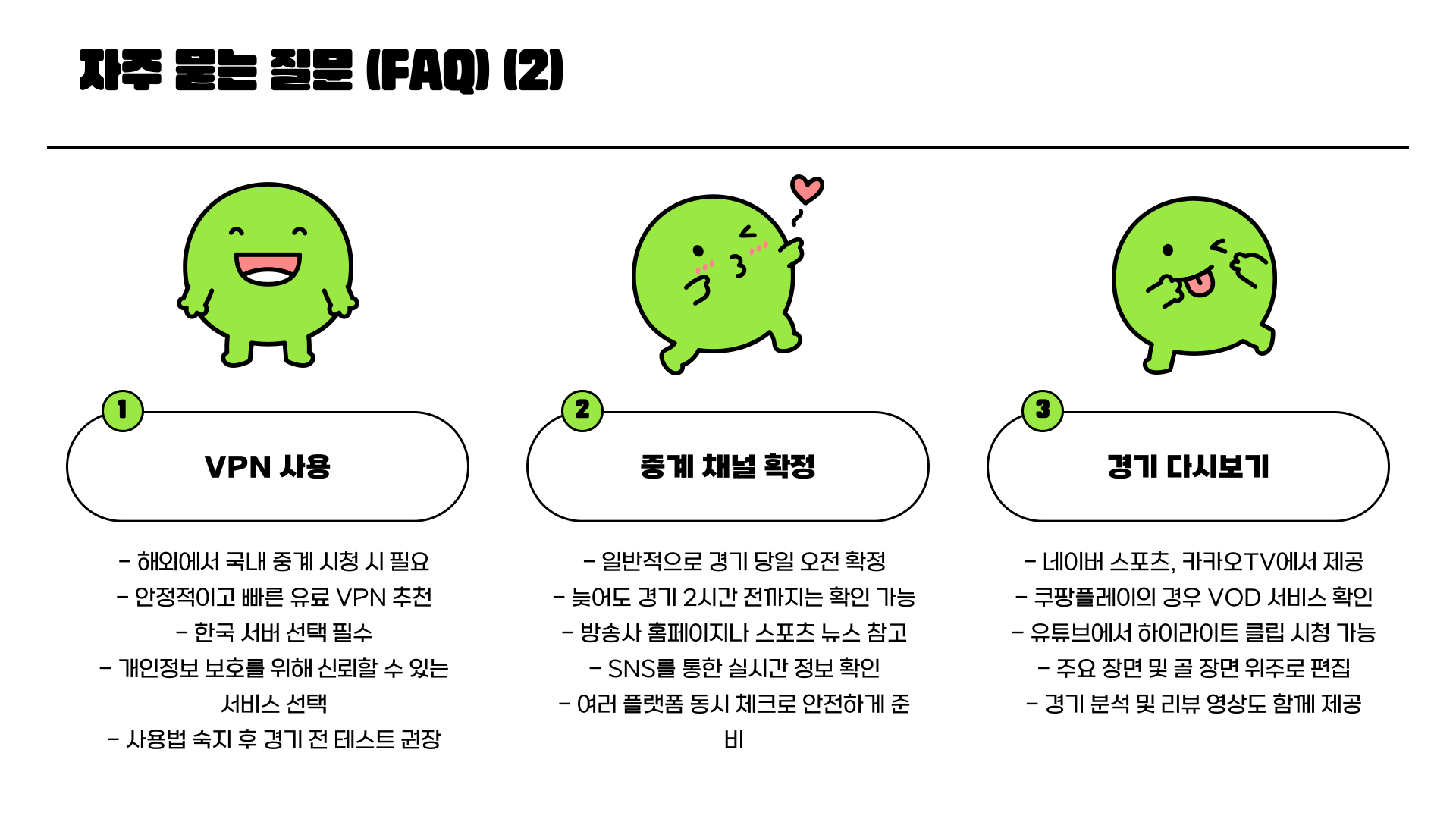 - 경기 종료 후에는 네이버 스포츠, 쿠팡플레이, 유튜브 등에서 하이라이트나 다시보기를 활용해 보세요.