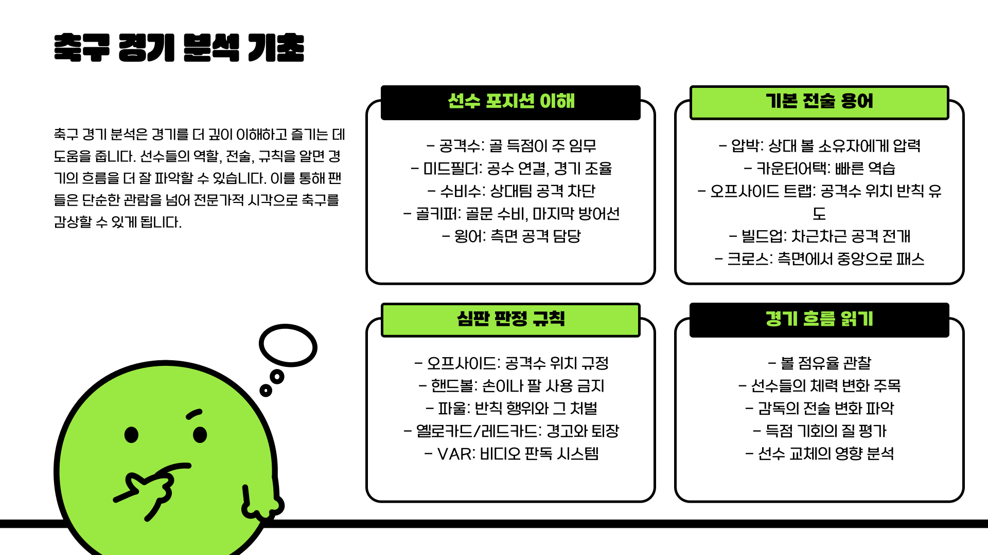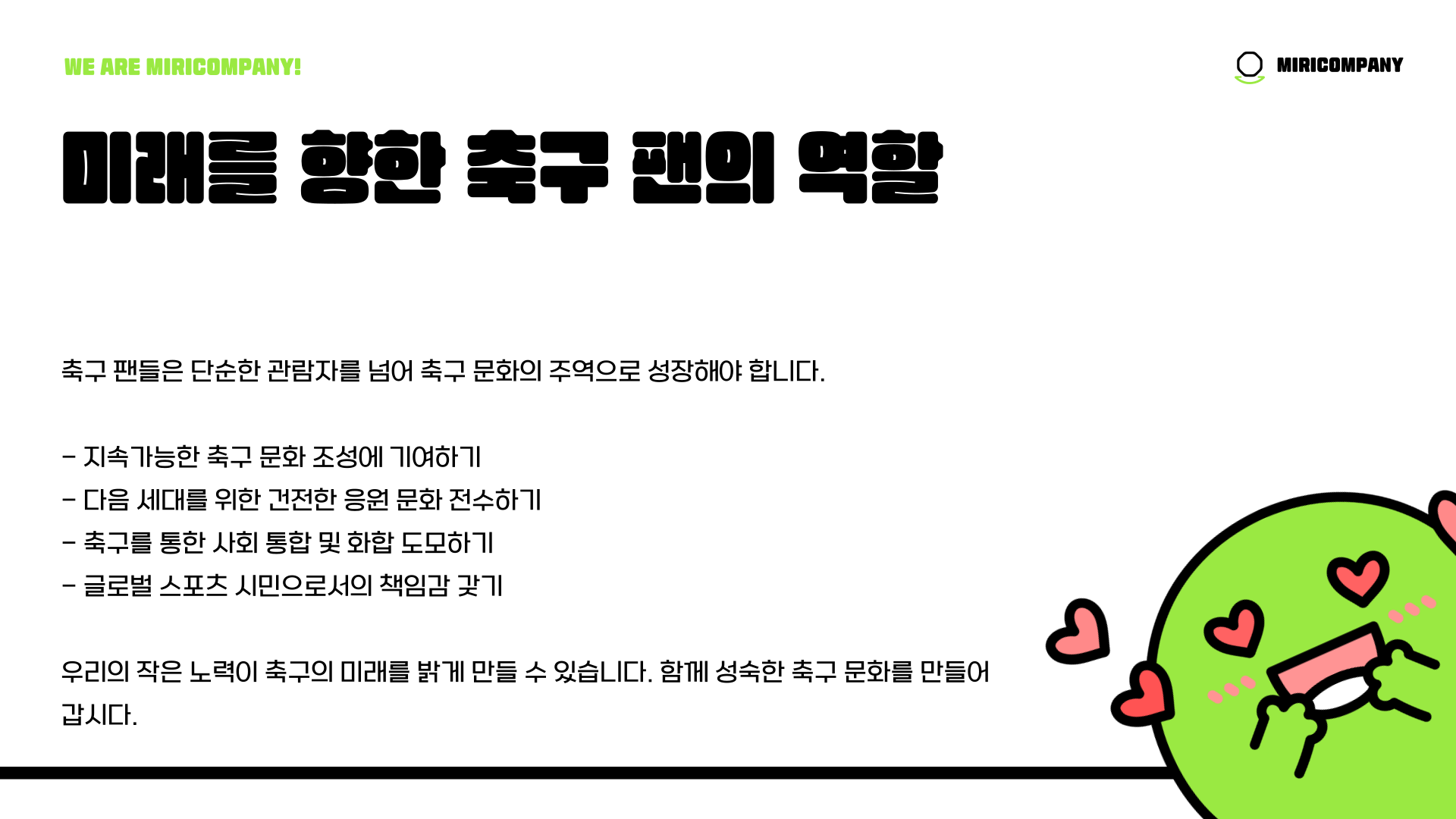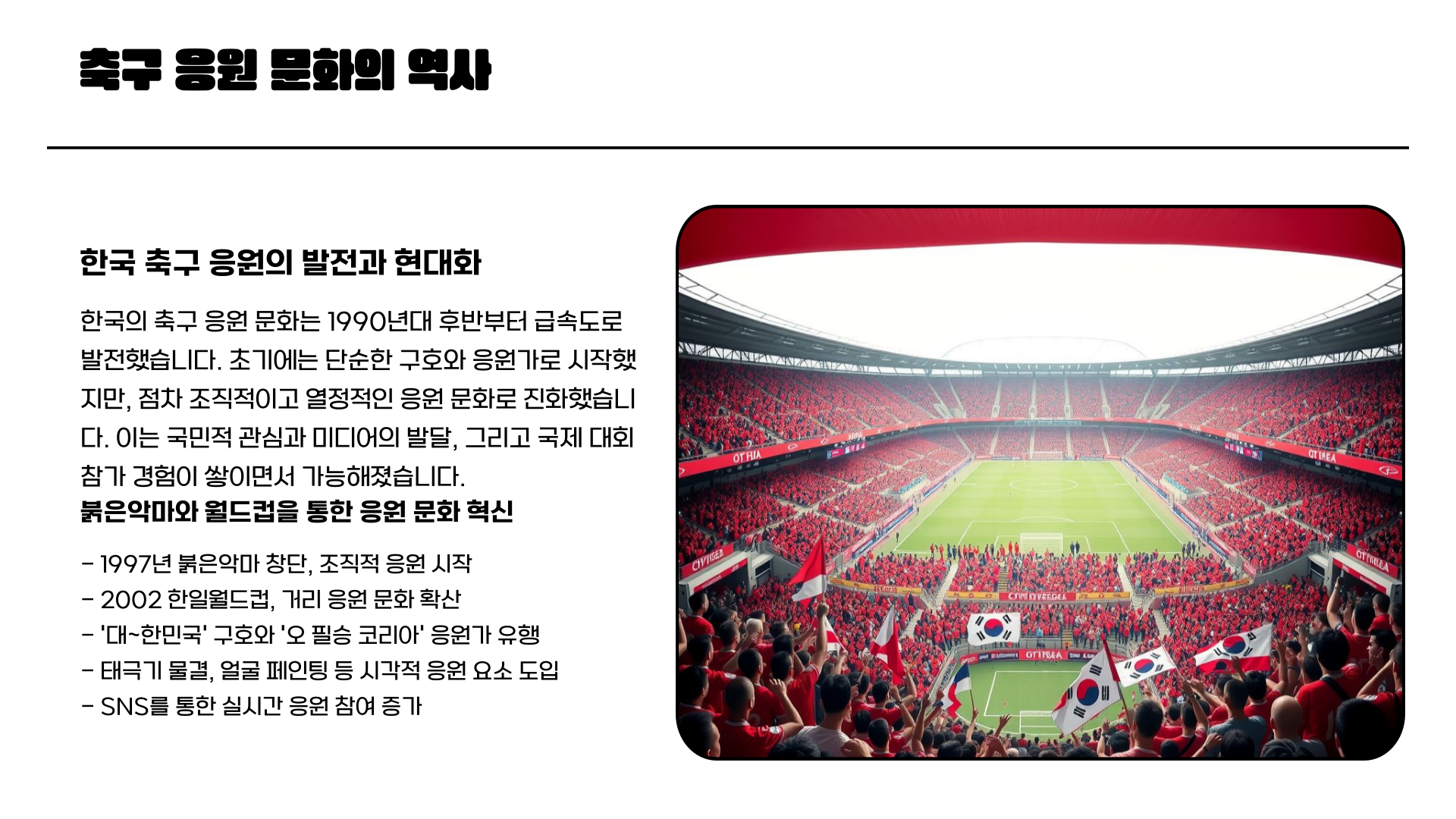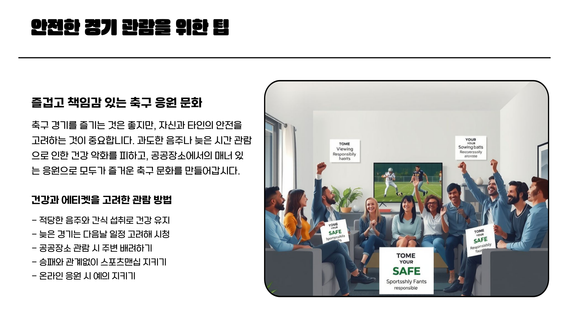 | 응원 준비 | 유니폼이나 스카프가 없더라도 열정적인 마음이 가장 중요! |