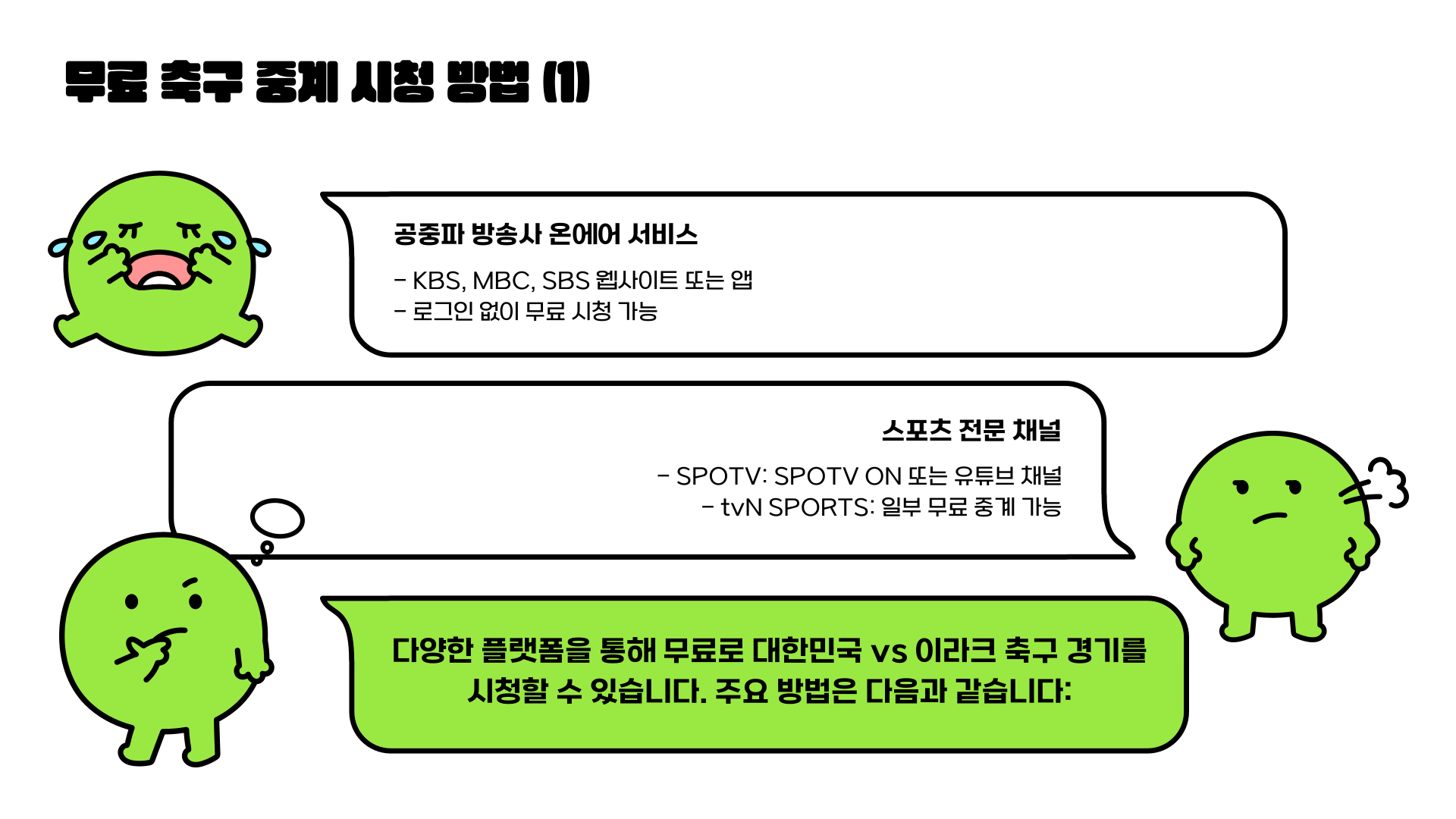 대한민국 vs 이라크 축구 생중계 무료 시청법
