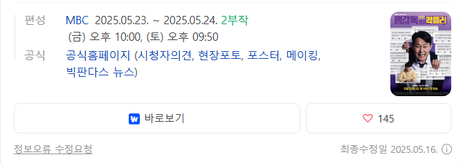 | 방송 기간 | 2025년 5월 23일 ~ 24일 |