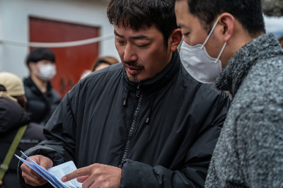 - 민태가 전화를 받은 뒤 무표정으로 길을 나서는 장면
