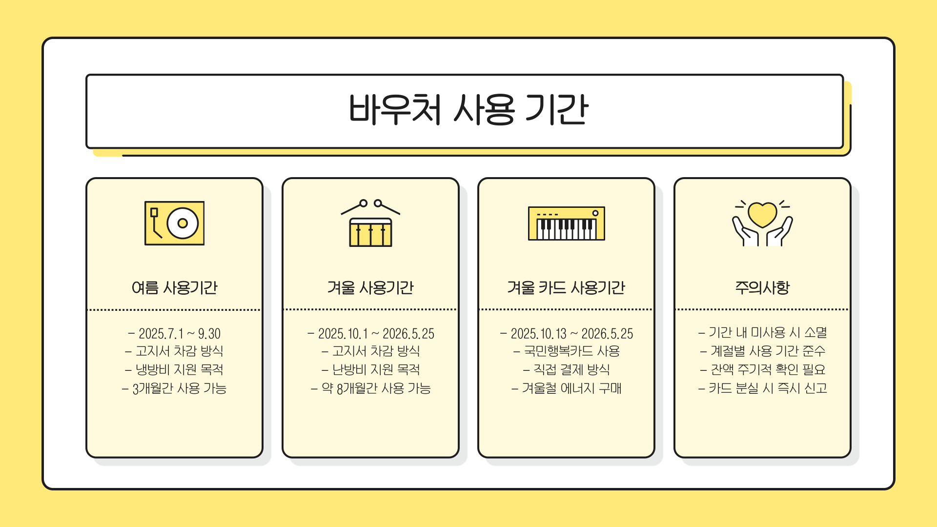 - 여름 사용기간 (고지서 차감): 2025년 7월 1일 ~ 9월 30일