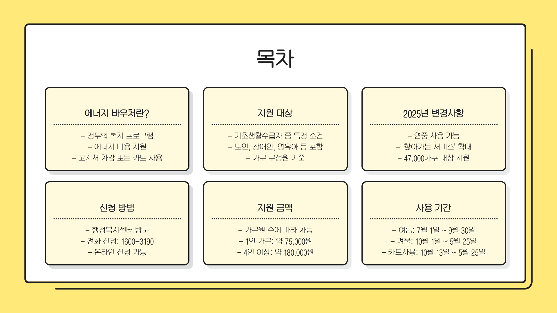 안녕하세요! 저는 작년에 처음으로 에너지 바우처를 신청해봤는데요, 덕분에 여름철 전기요금에 숨통이 좀 트였답니다. 혹시 아직 모르고 계신 분들이 있다면, 이번 기회에 꼭 알아두셨으면 좋겠어요. 특히 올해는 바우처 사용 방식이 바뀌어서 더 유용하게 활용할 수 있다고 하네요. 오늘은 이 제도가 정확히 무엇인지, 누가 받을 수 있고 어떻게 신청하면 되는지, 그리고 언제 어디에 쓸 수 있는지까지 꼼꼼히 알려드릴게요. 주변 분들과 함께 나누시면 더 좋겠죠?
