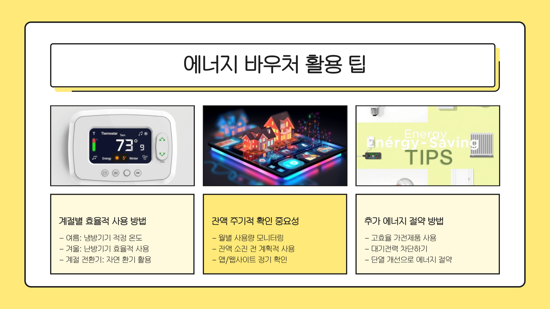 국민행복카드 앱, 전기·가스 고지서, 또는 에너지바우처 홈페이지에서 실시간 조회할 수 있어요.