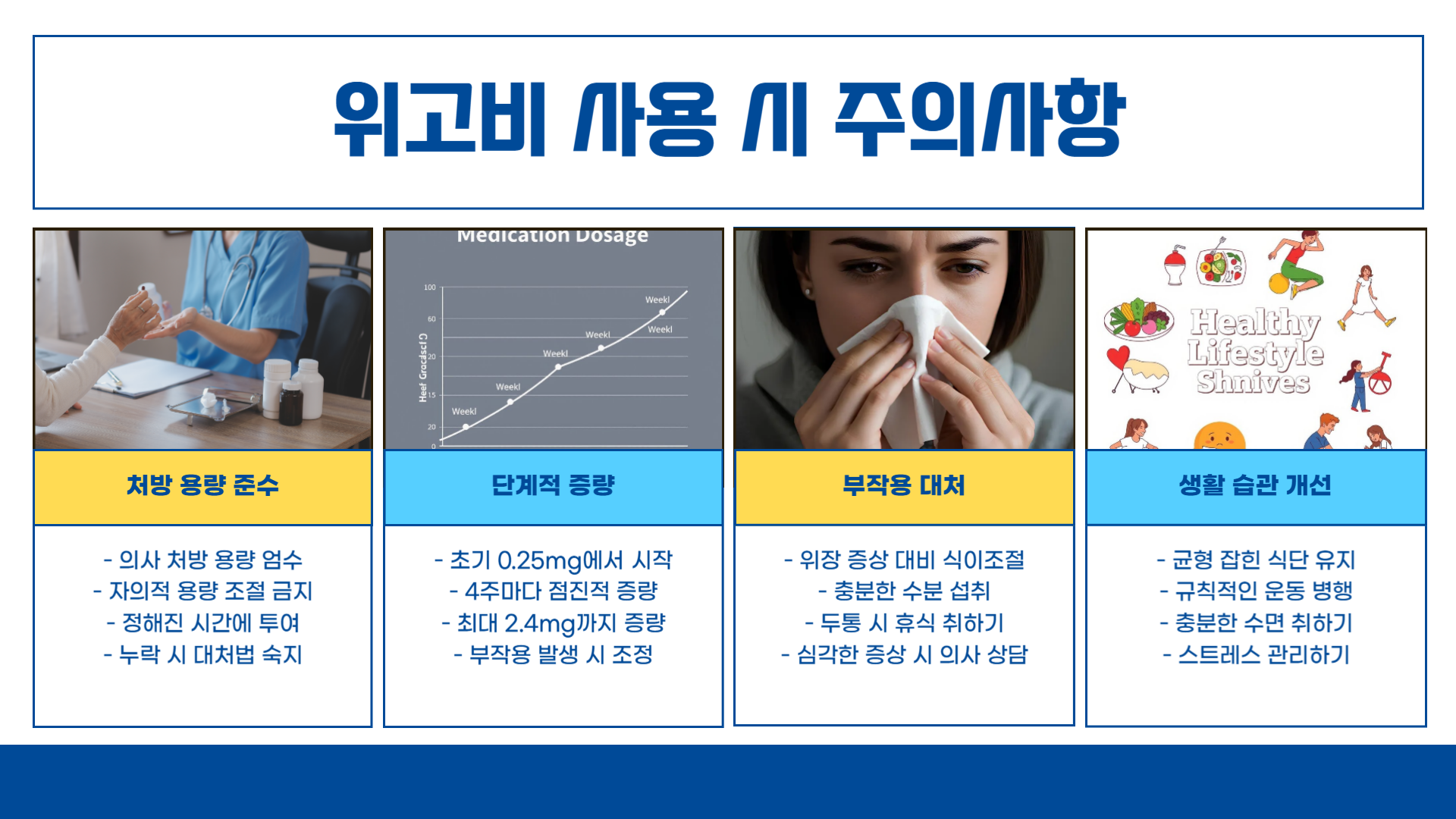 | 과거 병력 | 당뇨, 위장질환 여부를 의사와 상담 |