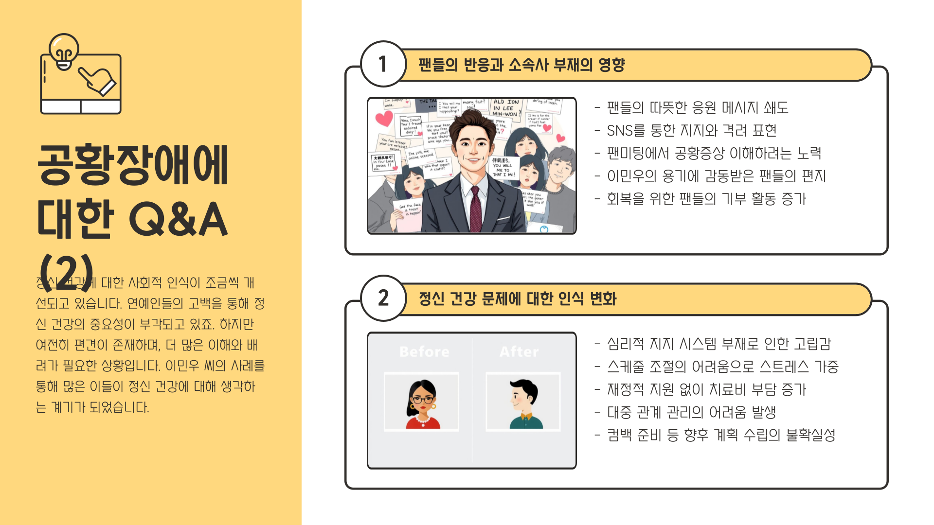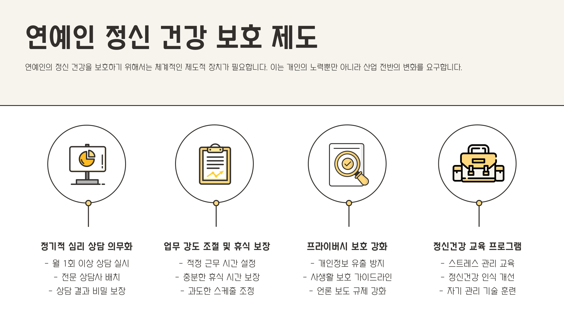 - 소속사 차원의 심리 상담 지원 체계 마련