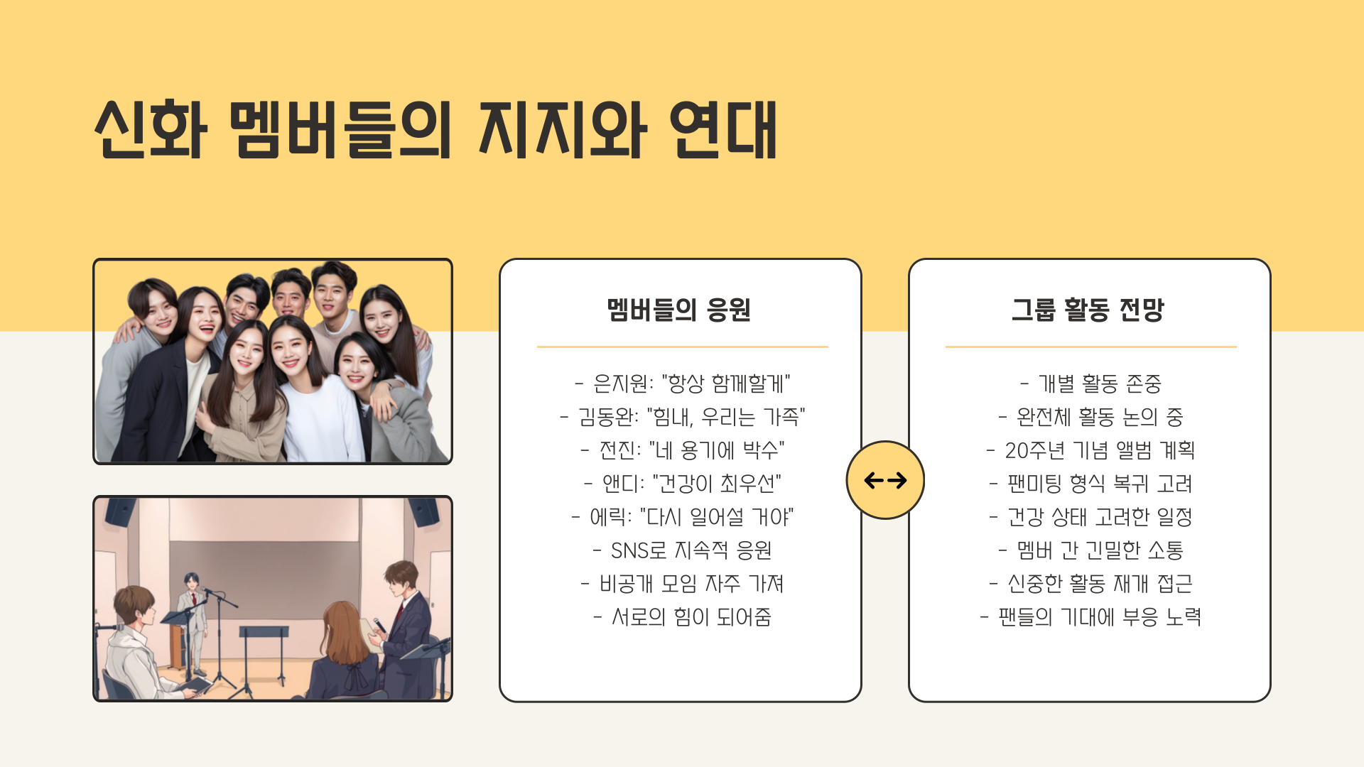 | 신화 멤버들과의 유대 | 소속감과 정체성을 느낄 수 있는 공간 |