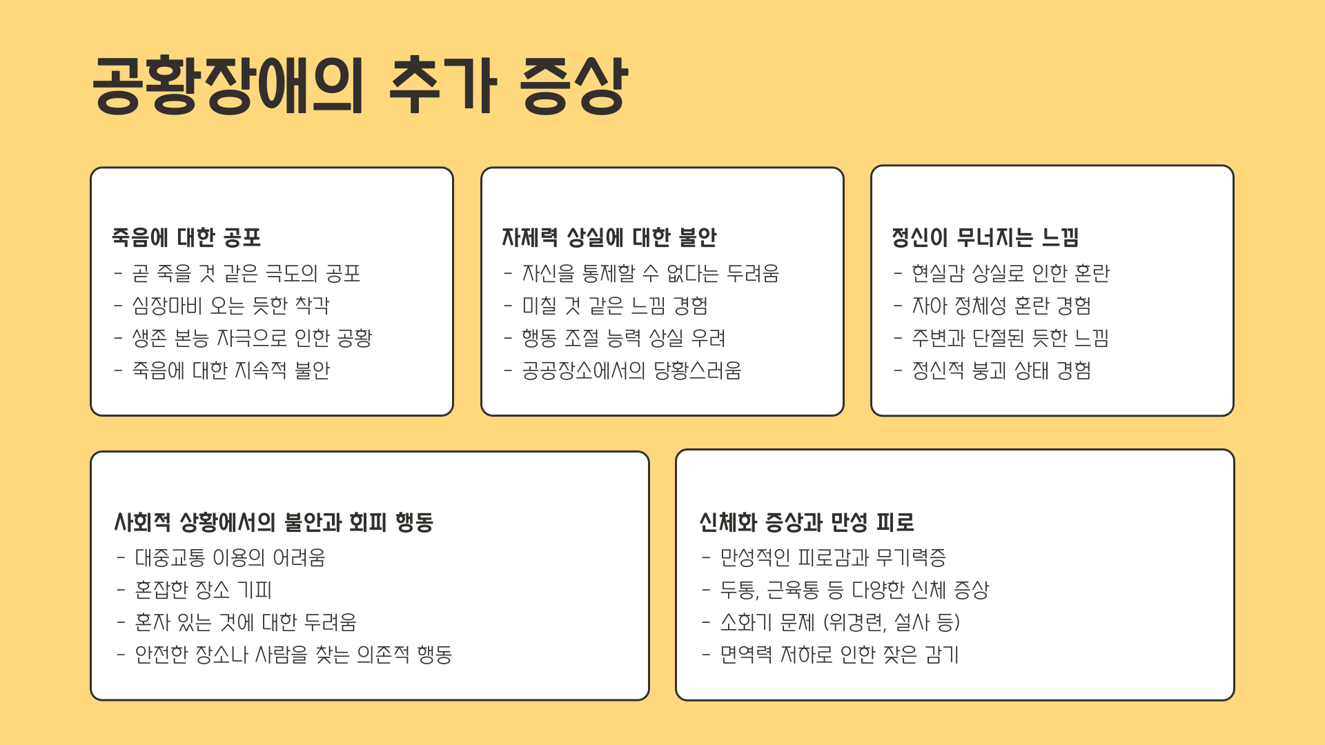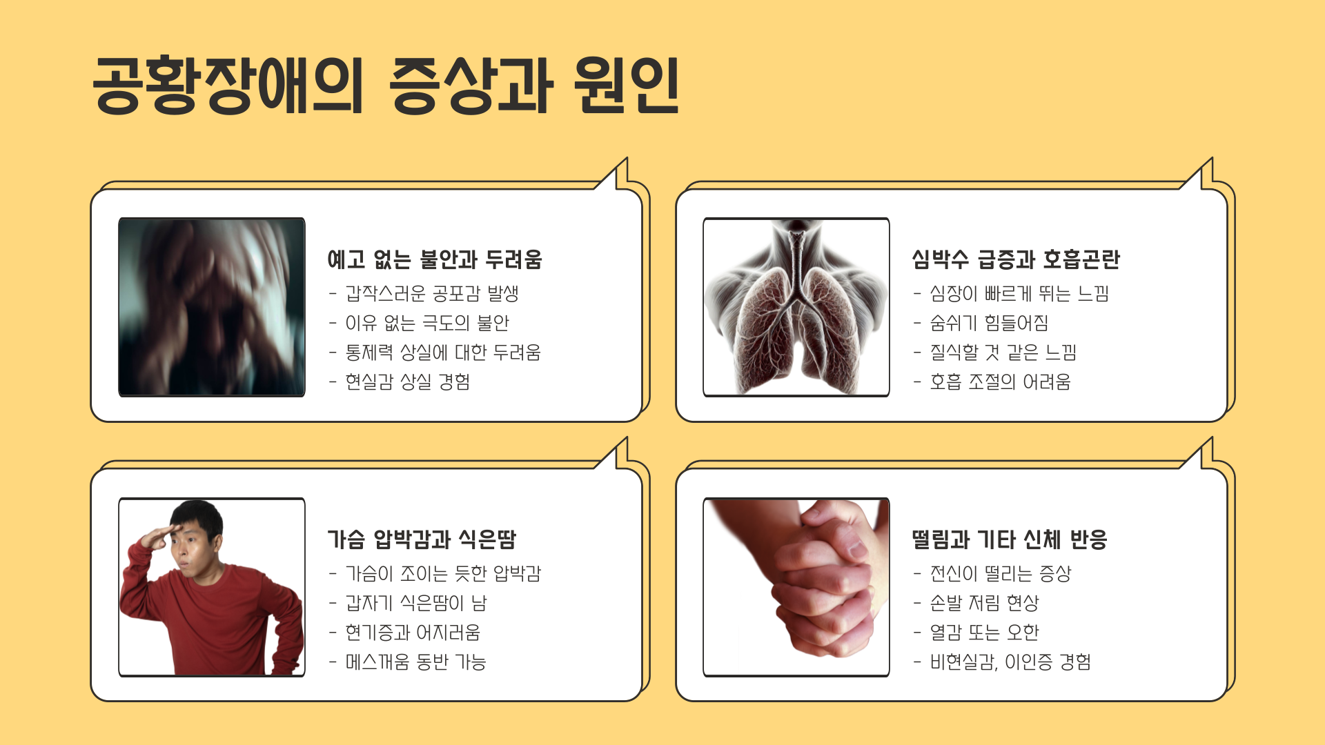 - 가슴 압박감, 식은땀, 떨림