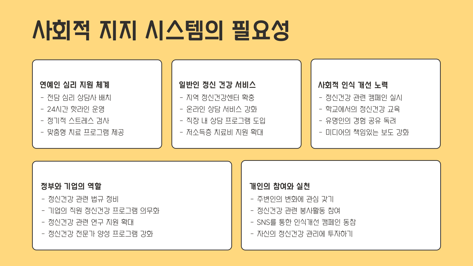 - 정기적인 정신건강 검진 제도화