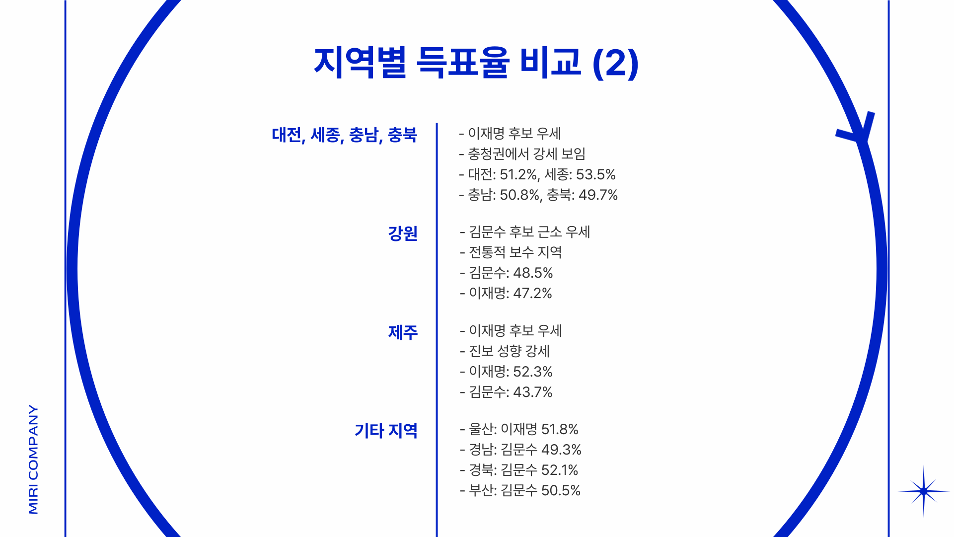 • 울산, 전남, 광주, 전북: 이재명 압도