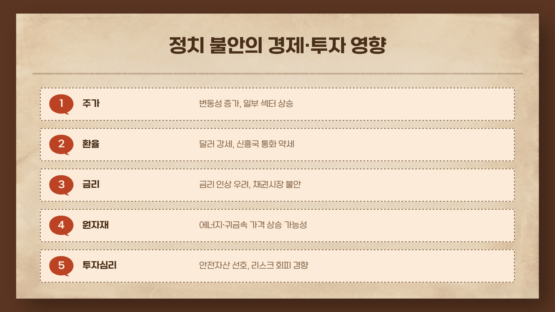 지정학적 불안정성과 정치 리스크로 인해 변동성이 커지고 있어요.