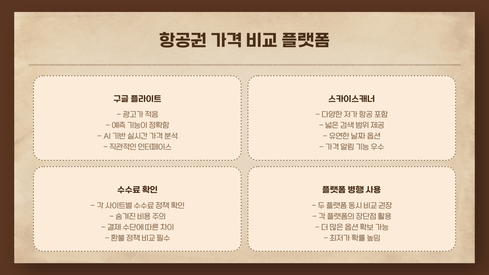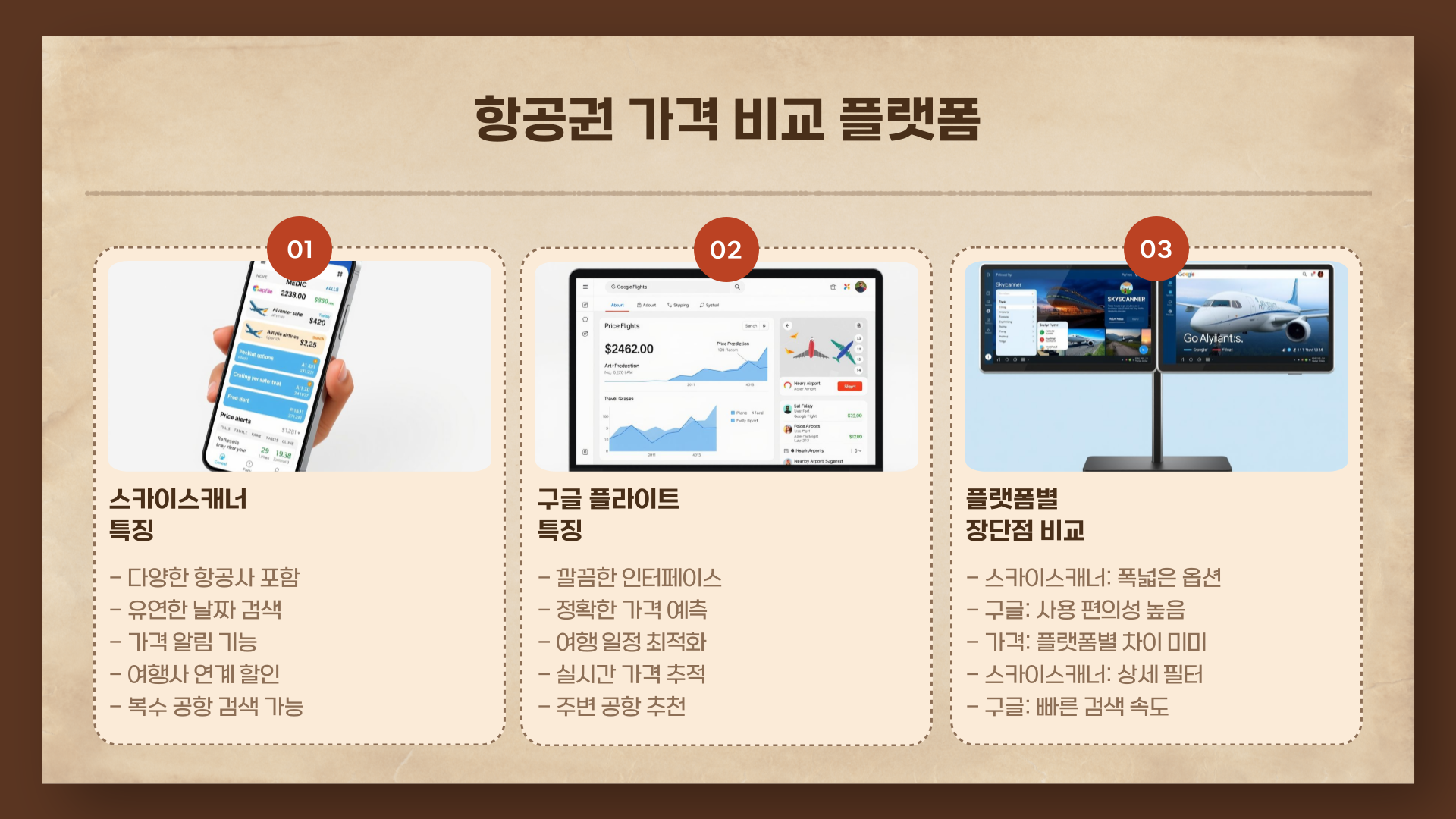 정확한 가격 예측은 구글 플라이트, 다양한 항공사 옵션은 스카이스캐너가 유리합니다.