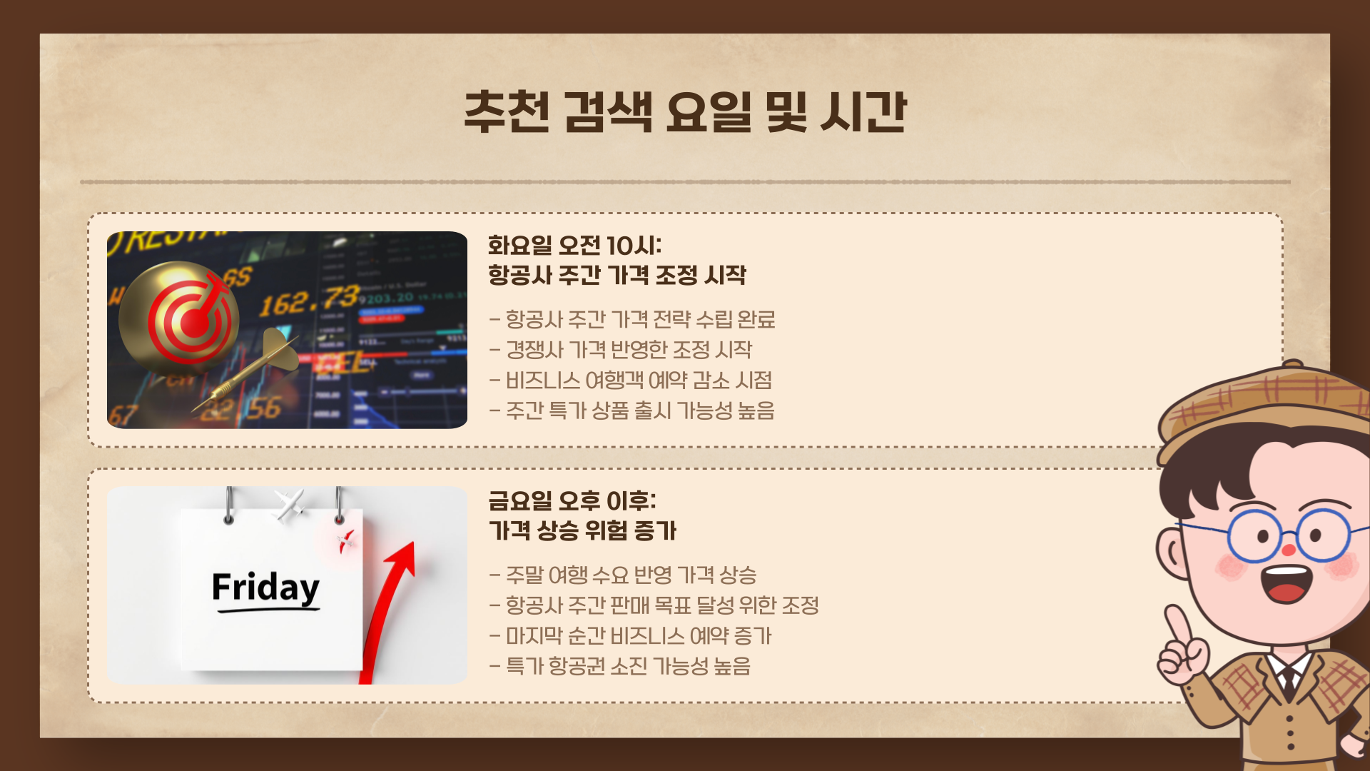 | 화요일 | 오전 10시 | 항공사 주간 가격 조정 시작 |