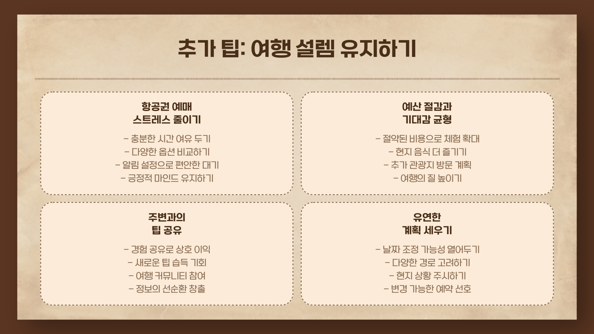 여행은 설렘이죠. 근데 그 설렘이 항공권 예매하면서 시작부터 스트레스로 바뀌면 너무 아깝잖아요. 이번 글에서 소개한 전략만 잘 기억하고 활용하면, 예산은 줄이고 기대는 올리는 여행이 가능해집니다. 실전에서 바로 써먹을 수 있는 팁이니, 주위 사람들과도 공유해 보세요! 더 저렴하게, 더 똑똑하게, 그리고 더 자유롭게 떠나는 당신의 여행을 응원합니다. ✈️