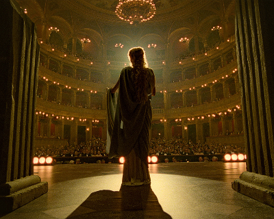 감독은 현실 장면에서는 어두운 조명과 좁은 프레임을 사용해, 마리아 칼라스의 폐쇄된 삶을 시각적으로 표현합니다. 반면, 과거 회상 장면에서는 탁 트인 무대, 웅장한 조명, 따뜻한 색감을 활용하여 그녀가 오직 노래할 때만이 자유로웠다는 메시지를 전달합니다.