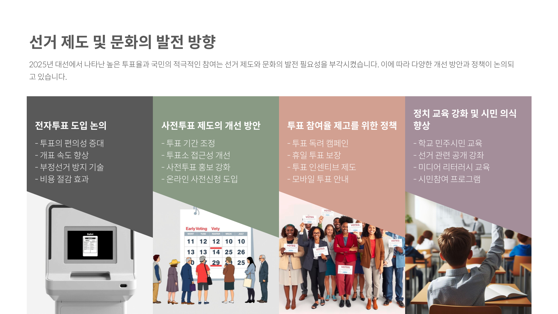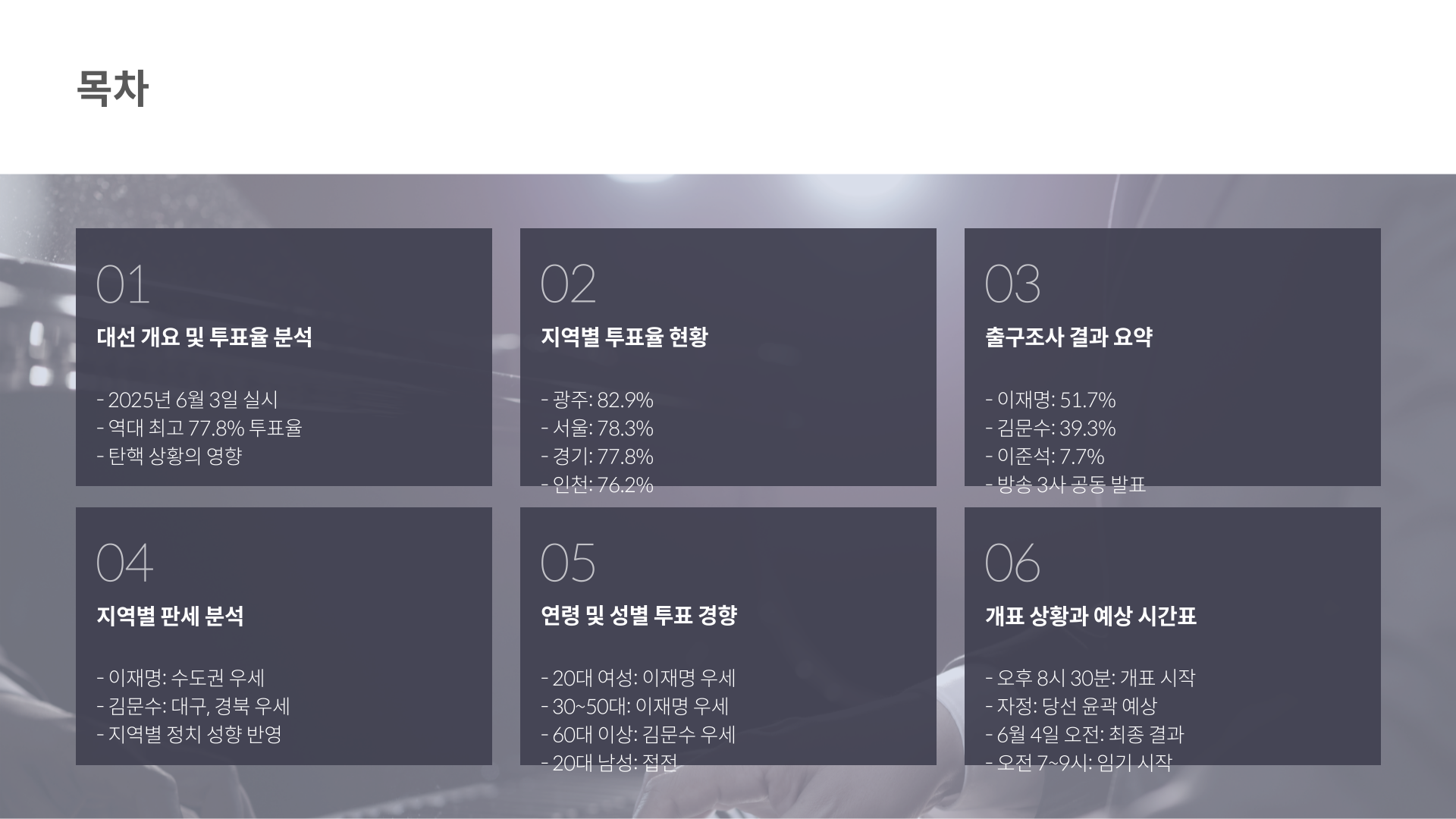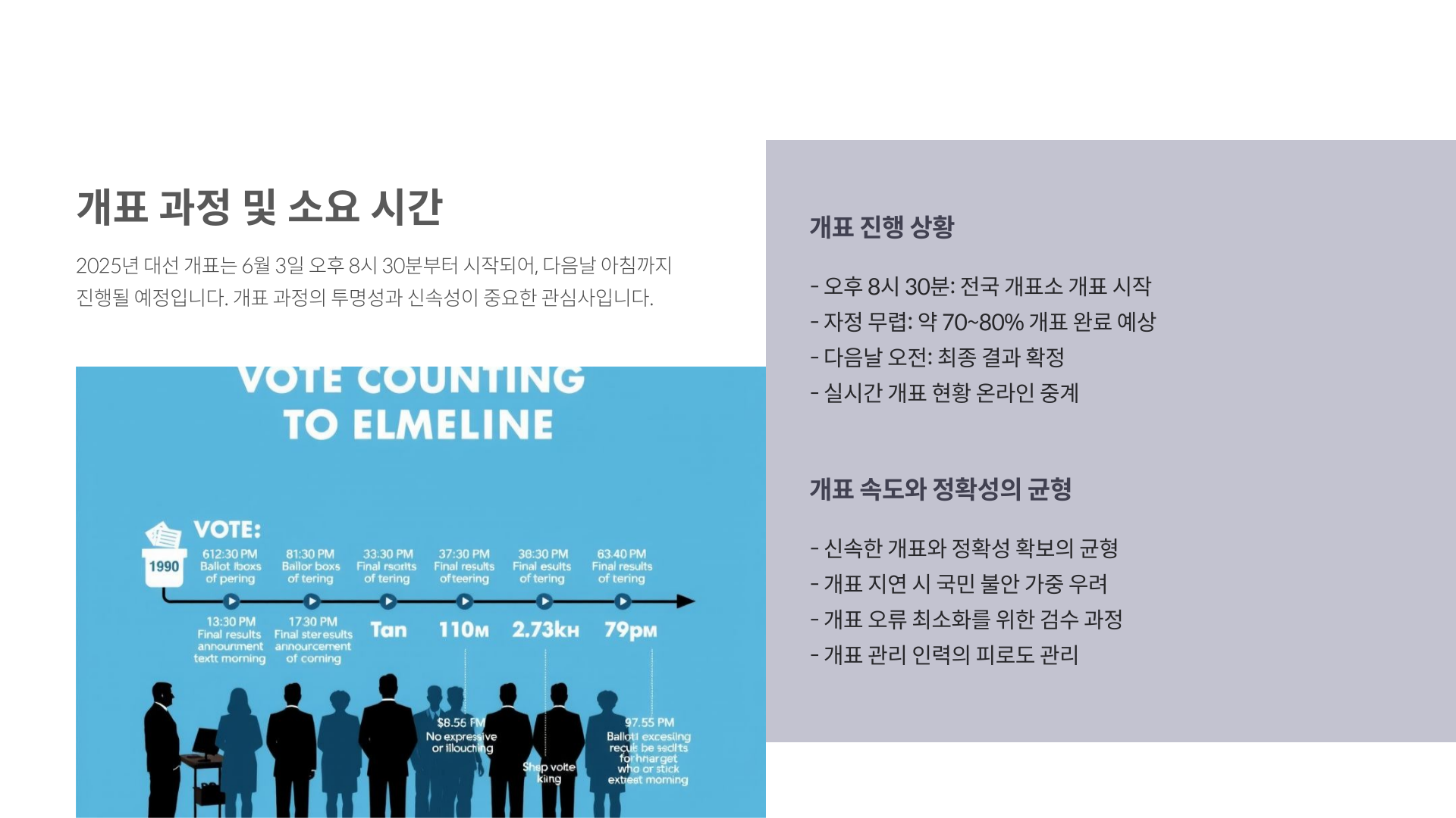 2025년 대선이라는 역사적 하루를 함께 따라가보셨는데요, 여러분의 마음엔 어떤 감정이 남았나요? 높은 투표율 속에 드러난 국민의 열망, 예측을 뛰어넘는 출구조사 결과, 그리고 밤새도록 진행될 개표까지… 오늘 하루는 정말 잊지 못할 것 같아요. 정치가 멀리 있는 이야기가 아니라 우리 삶 속 깊숙이 들어와 있다는 걸, 이번 선거가 분명히 보여줬습니다. 여러분의 한 표가 만들어갈 내일을 기대하며, 다음 이야기에서 다시 만나요. 💜