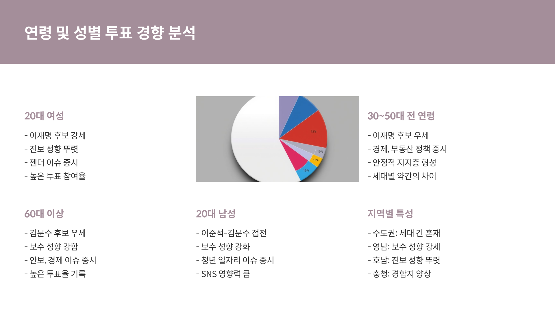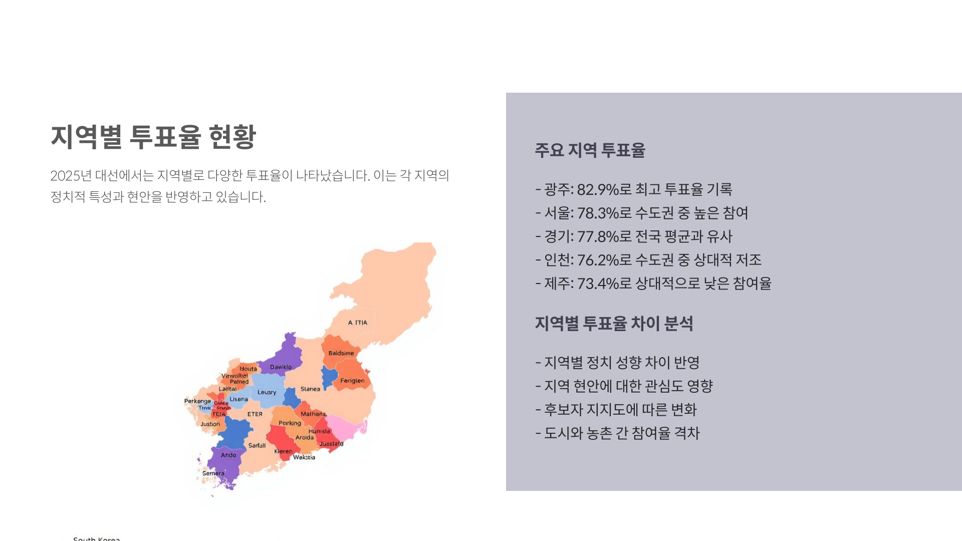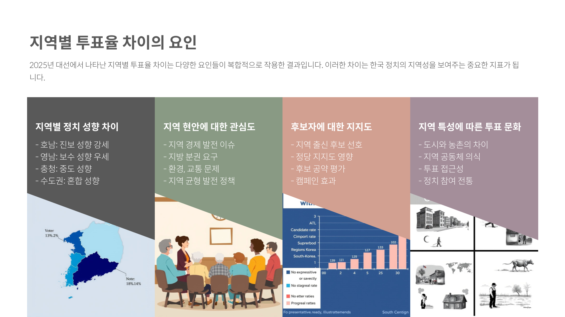정치 성향, 지역 현안, 후보 지지도 등 복합적인 요인이 영향을 줍니다.