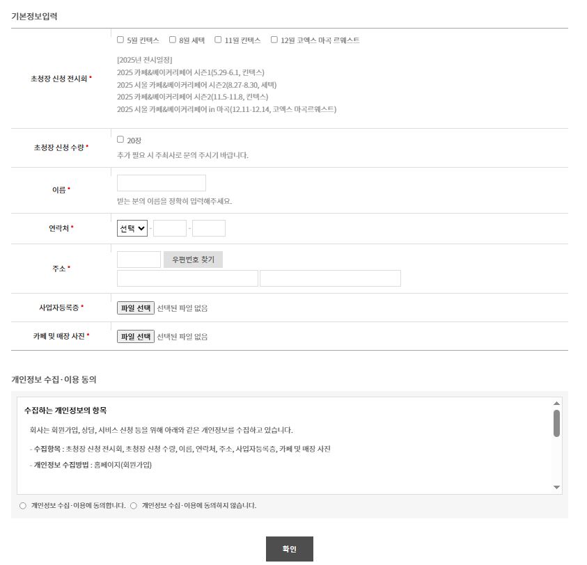 2025 카페&베이커리페어는 다음 조건에 해당하는 경우 무료 입장이 가능합니다.