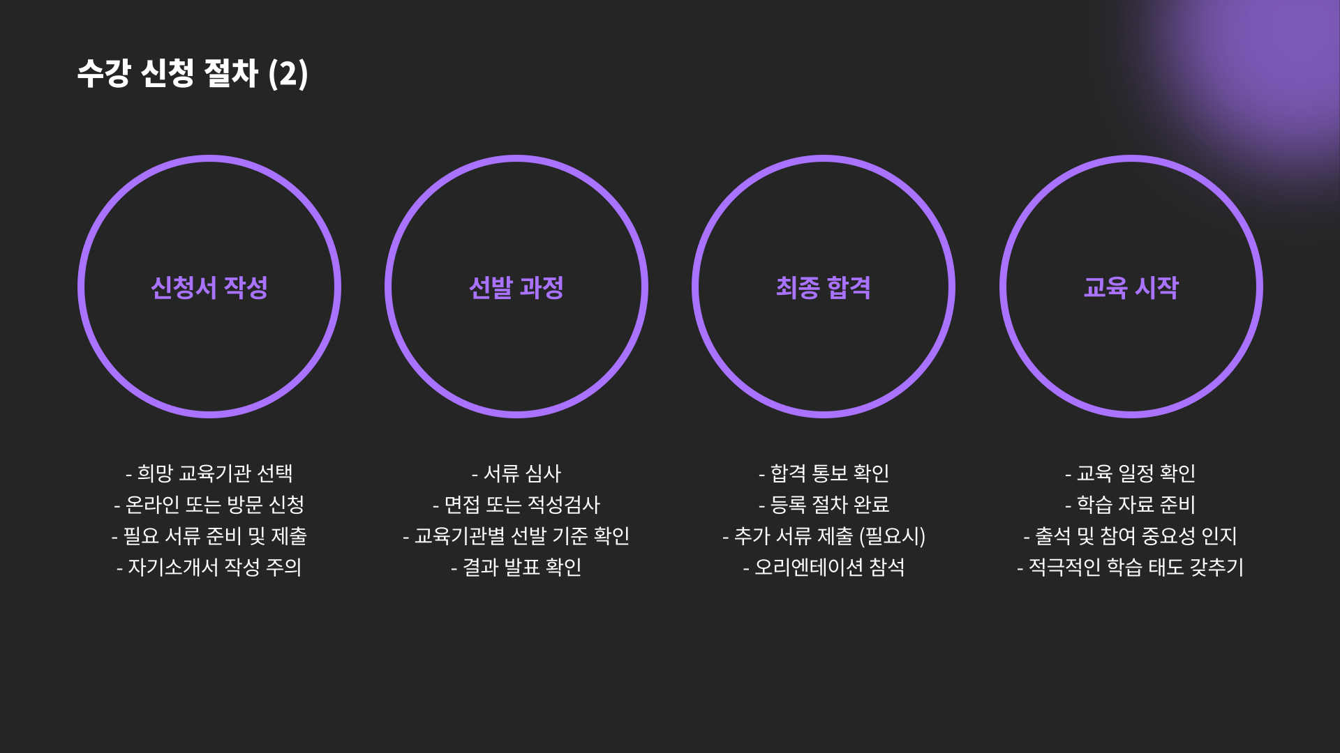 - 희망 교육기관 상담 후 수강 신청서 작성