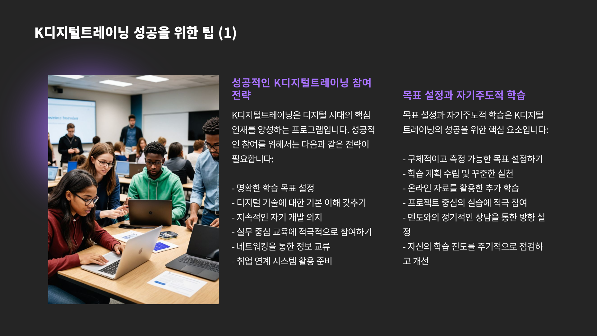 오늘은 K디지털트레이닝의 모든 것을 알아보고, 어떻게 하면 이 기회를 잘 활용할 수 있을지 함께 살펴보겠습니다.