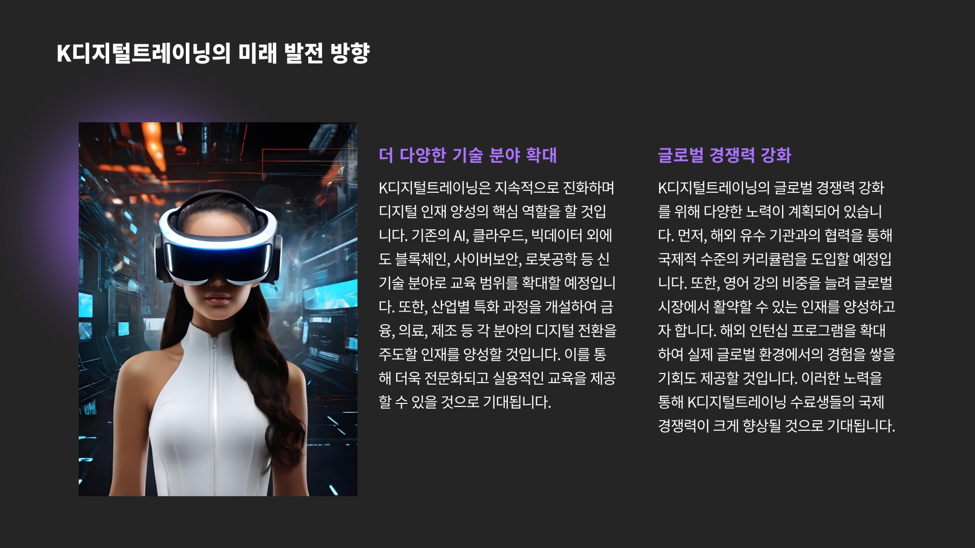 AI, 클라우드, 반도체 등 디지털 전환 시대에 필요한 기술을 중심으로 교육이 이루어지죠.