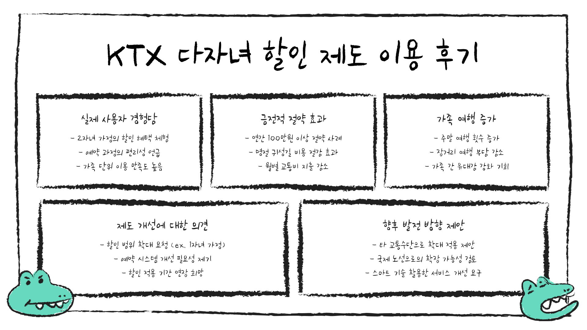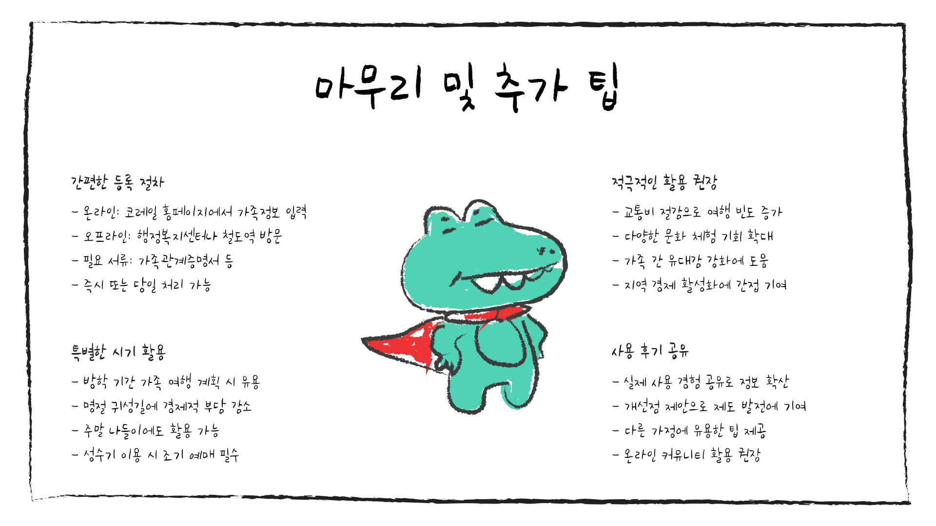 이제 KTX 다자녀 할인은 더 이상 3자녀 가구의 전유물이 아니에요. 저처럼 두 아이를 키우는 부모님이라면 누구나 이 혜택을 활용할 수 있게 되어 정말 반가운 변화예요. 등록은 쉽고, 혜택은 크고! 특히 방학이나 명절처럼 교통비가 부담될 때 유용하니, 꼭 챙겨보시길 바라요. 여러분의 즐거운 가족 여행이 더 풍성해지길 응원합니다. 혹시 사용 후 느낀 점이나 팁 있으시면 댓글로 함께 나눠주세요 :)