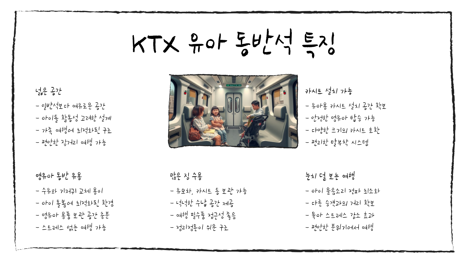 혹시 KTX 유아 동반석이라는 거 들어보셨나요? 저도 예전엔 몰랐는데 아이들과 여행하다 보면 이 좌석 하나로 여행 스트레스가 확 줄어들어요. 유아 동반석은 일반석보다 공간이 넓고, 유아 카시트도 설치할 수 있어서 특히 영유아 동반 시 정말 유용해요. 게다가 짐이 많아도 걱정 없고, 아이가 울어도 다른 승객 눈치 덜 볼 수 있답니다.