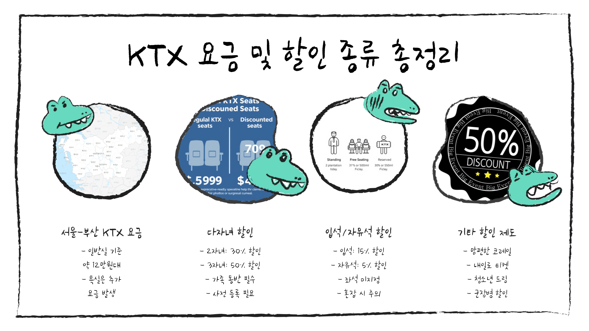 서울-부산 기준 KTX 일반실 요금은 약 12만원대예요. 하지만 각종 할인 제도를 잘 활용하면 최대 50% 이상 절약할 수도 있답니다. 다양한 할인 혜택을 정리해봤어요.