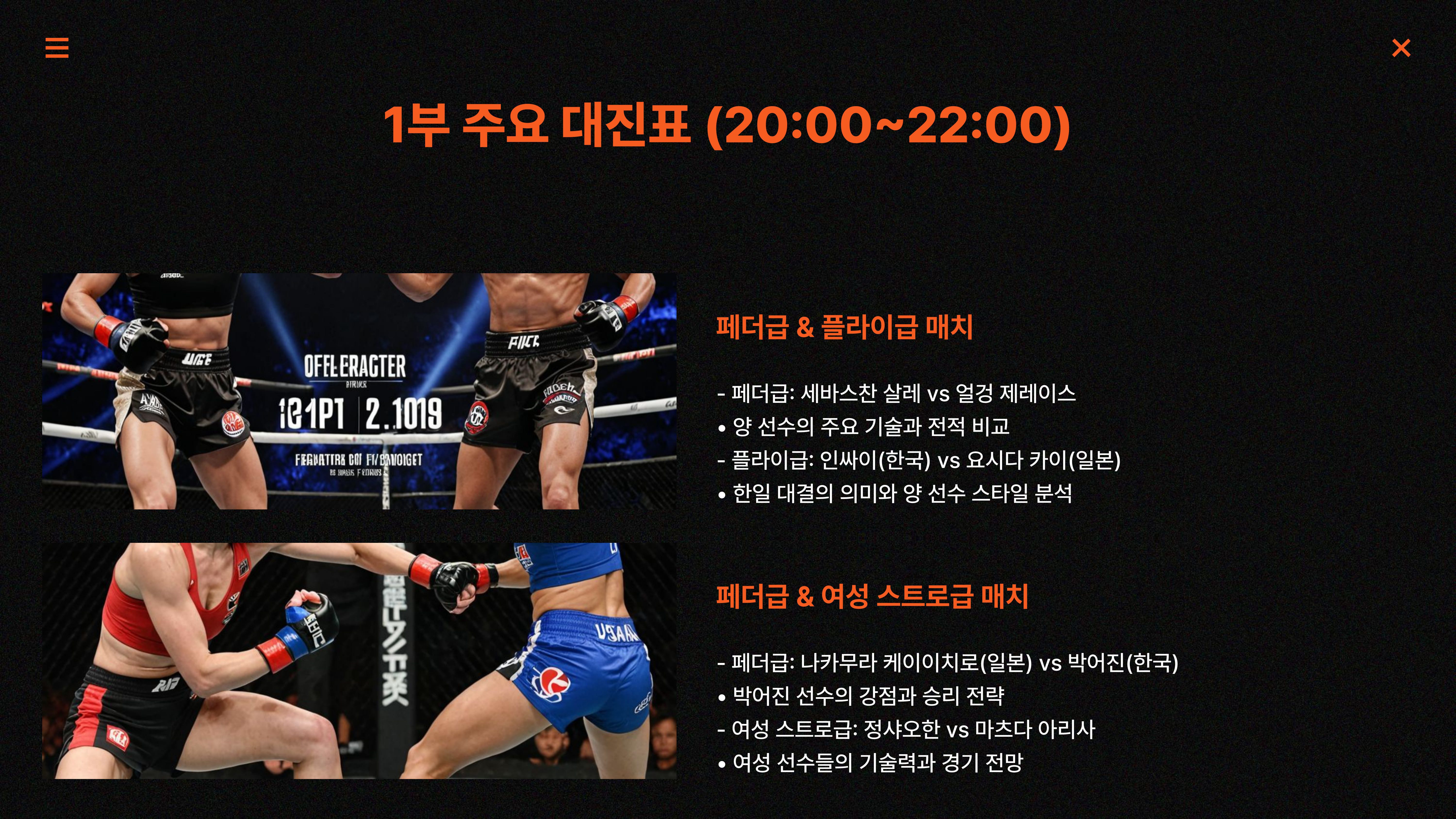오늘은 그 대진표를 꼼꼼히 정리해 드릴게요. 격투 팬이라면 반드시 체크하고 응원 준비하시길!